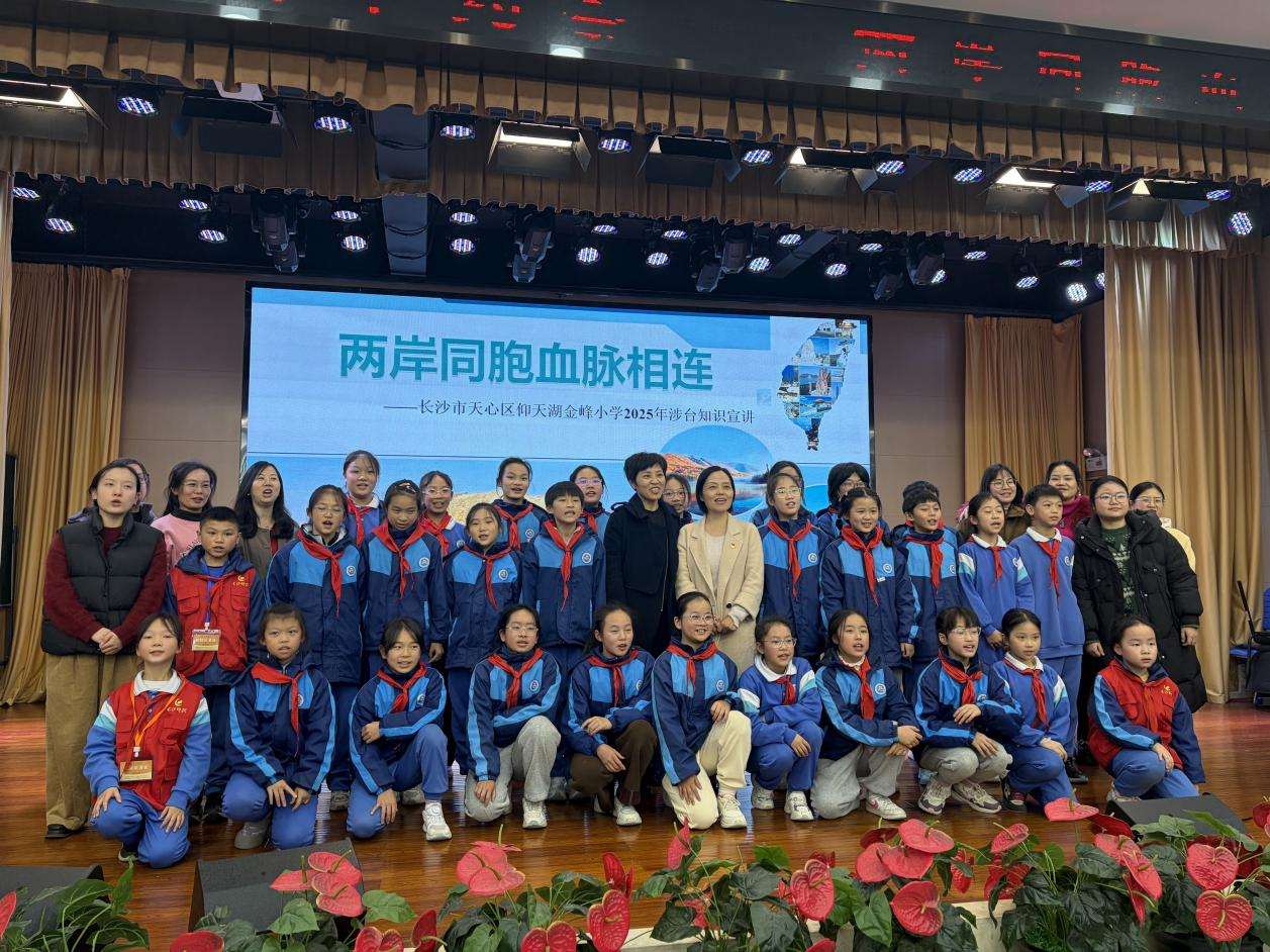 11月26日,长沙市仰天湖金峰小学举行涉台专题讲座,长沙市台办宣传处负责人以“走进宝岛台湾——历史、现在与未来的对话”为主题,向与会师生介绍了台湾的基本概况,并通过梳理历史脉络、回顾抗争史实和阐释法理依据,清晰有力地阐明了台湾自古以来就是中国神圣不可分割领土的客观事实,两岸同文同种、血脉相连的骨肉亲情,以及国家推进两岸关系和平发展、实现完全统一的坚定方针。