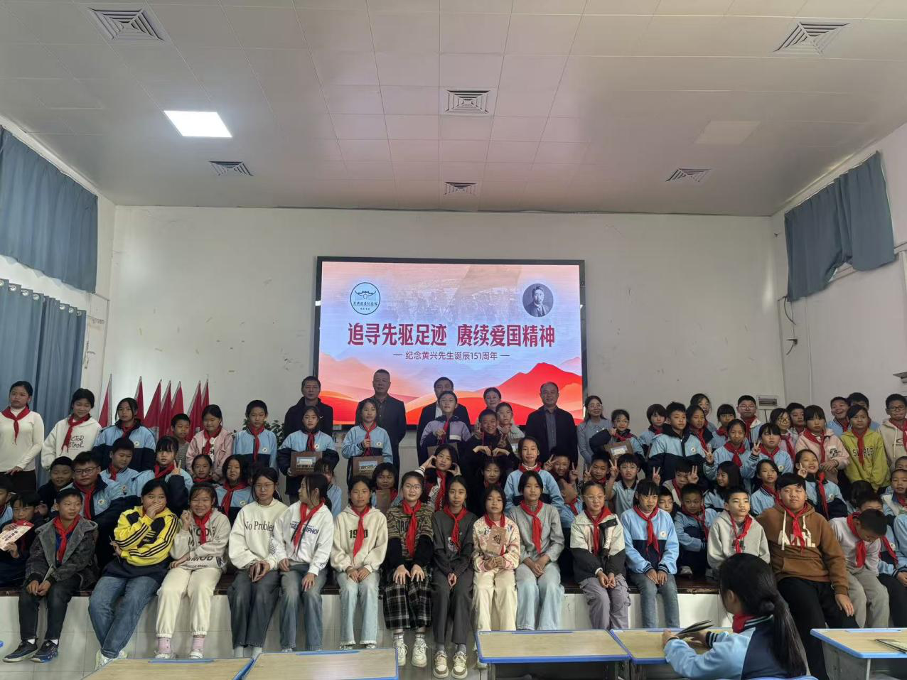 10月23日,黄兴故居纪念馆联合黄兴新村在黄兴实验小学共同开展“追寻先驱足迹 赓续爱国精神”--纪念黄兴先生诞辰151周年微宣讲活动。活动特别邀请到黄兴曾长孙、湖南省政协常委、民革湖南省委会常委、民革湖南祖统委主任黄柏禹先生出席,与师生们一同缅怀先辈、传承爱国精神。