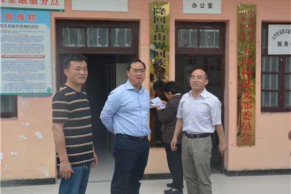 5月24日,省委台办肖祥清主任率有关处室负责同志赴隆回县山界回族乡大坪村调研指导扶贫工作。邵阳市委台办主任戴代军,隆回县委常委、副县长刘爱龙,山界回族乡党委书记胡拥军等陪同调研。